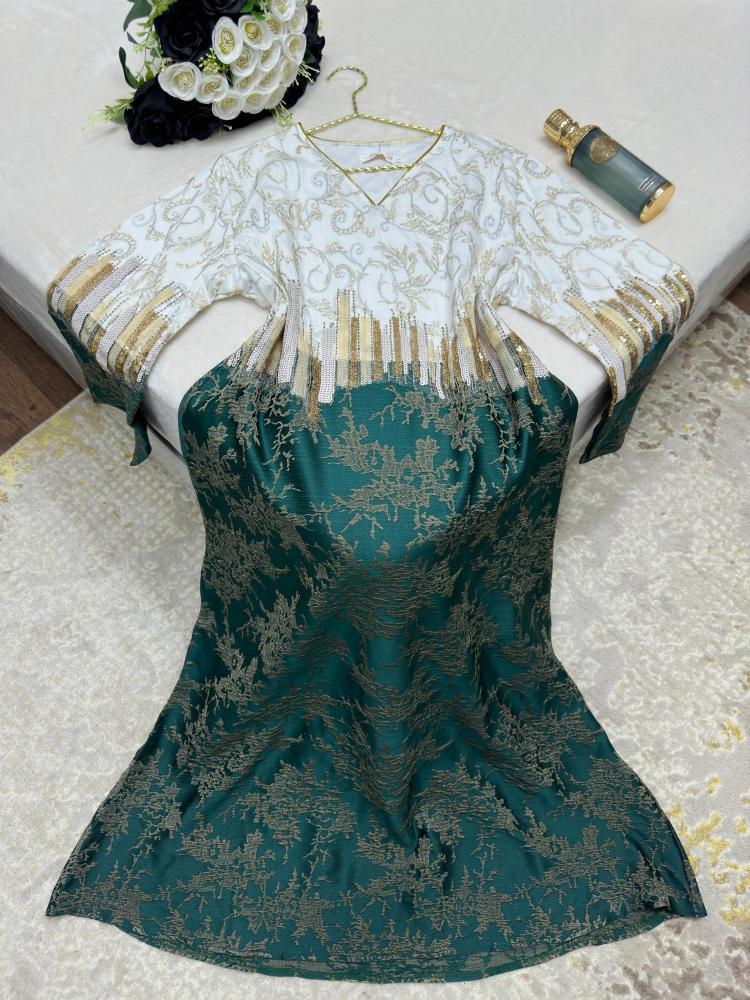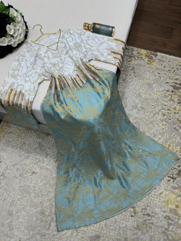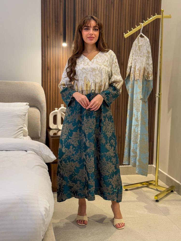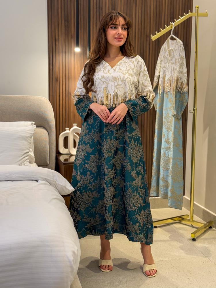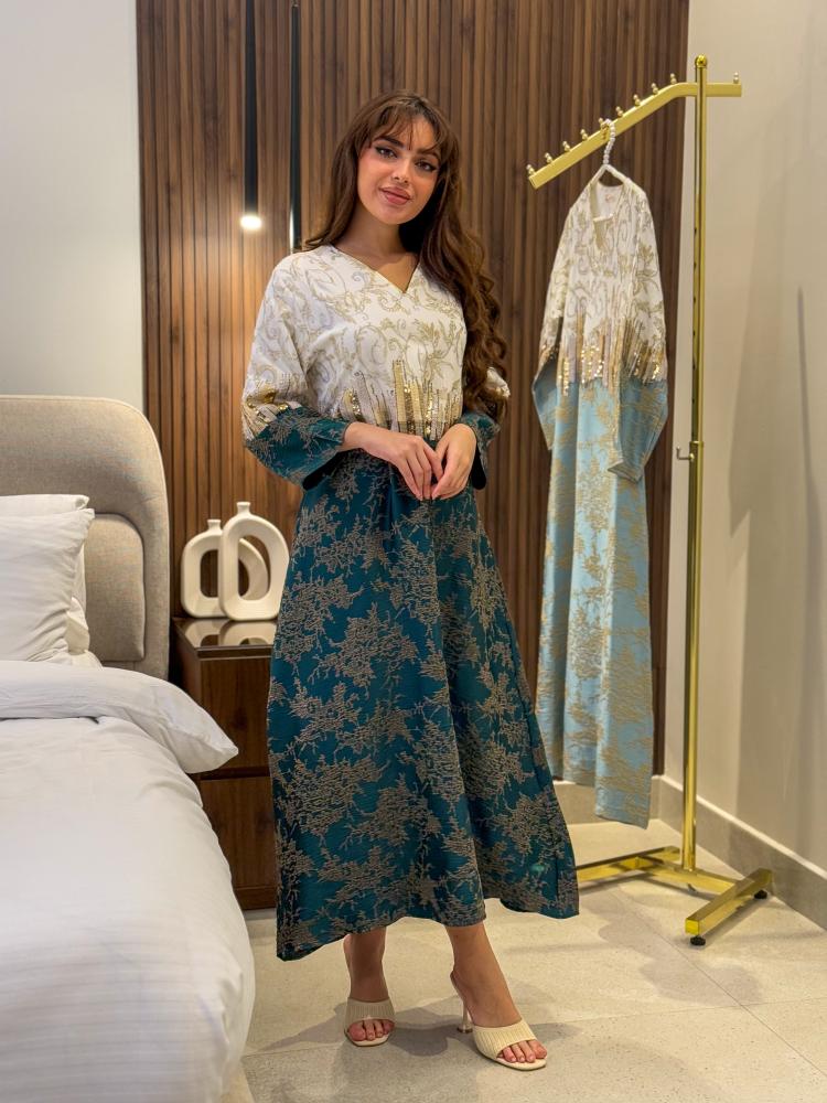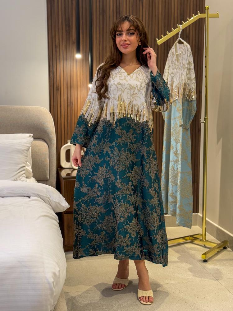 جلابية سهرة راقية ، خامة جاكار فاخر بنقوش ذهبية،