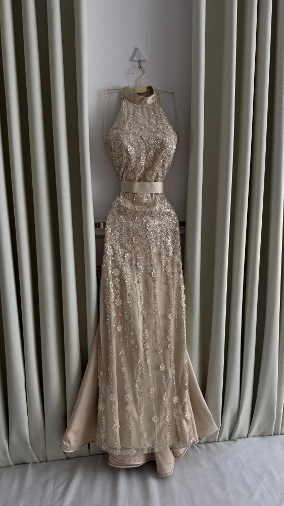 فستان سهرة كلفة خرز ذيل تفته سله