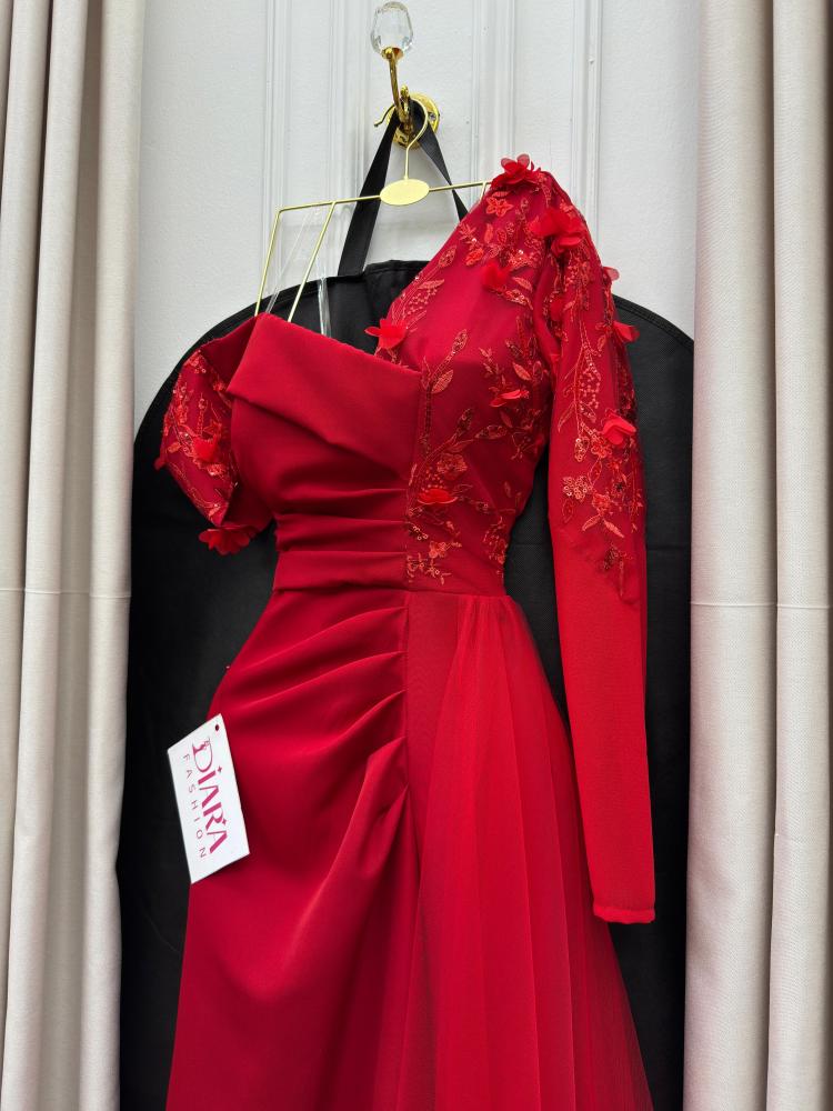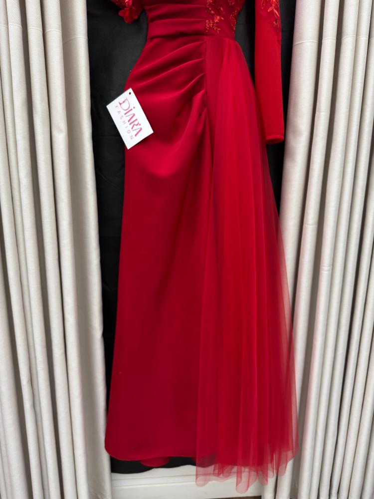 فستان سهرة باربي مورد الكتف مع دلع تل