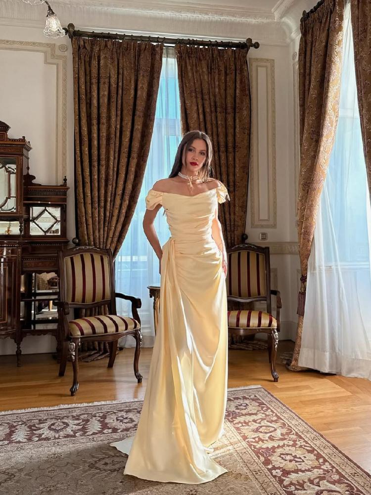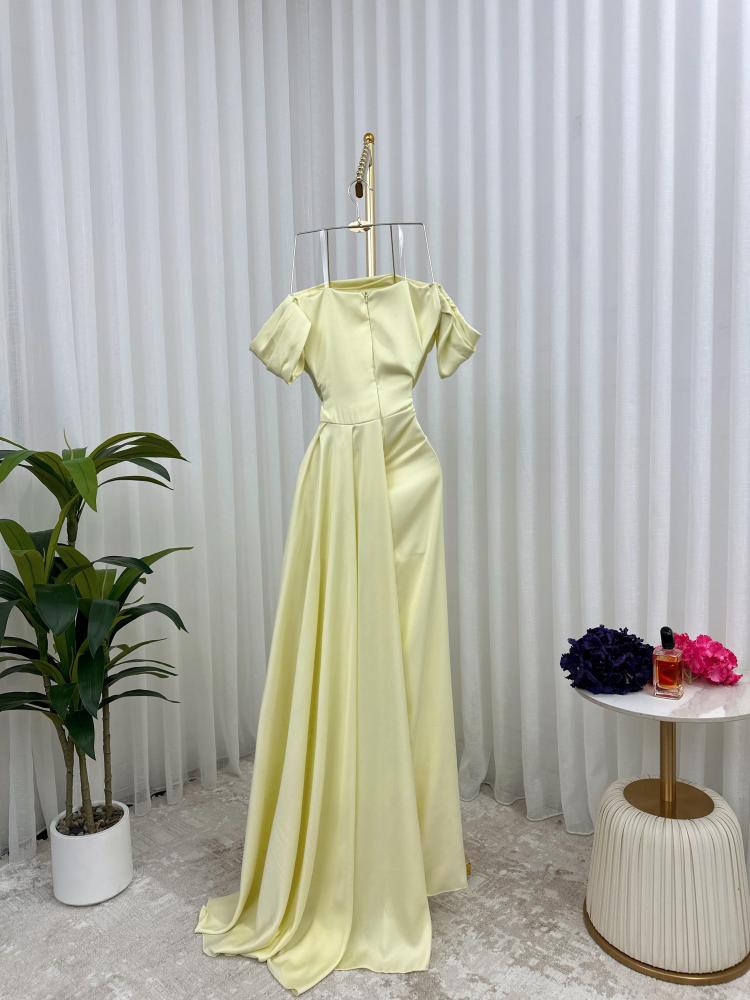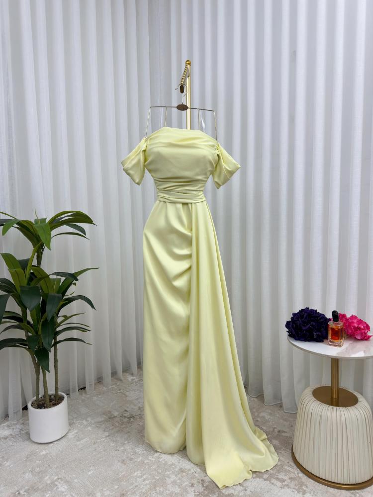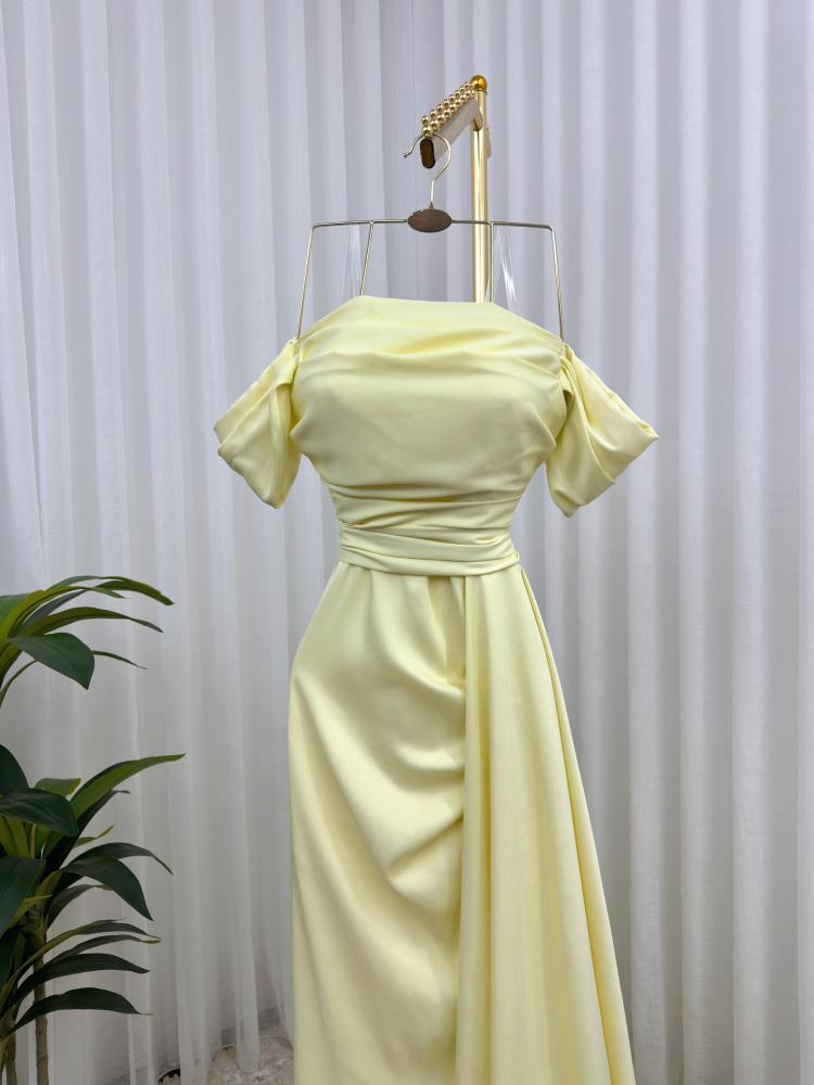 فستان سهرة تفته لماع لون ليموني