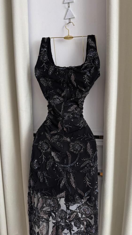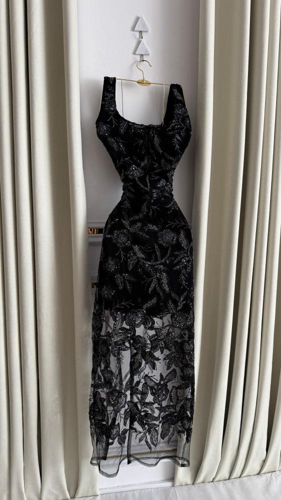 الخامة: دانتيل مطرز بترتر لامع يضيف إشراقة مميزة.