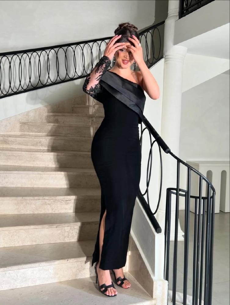 فستان سهرة فستان أسود بشق جانبي