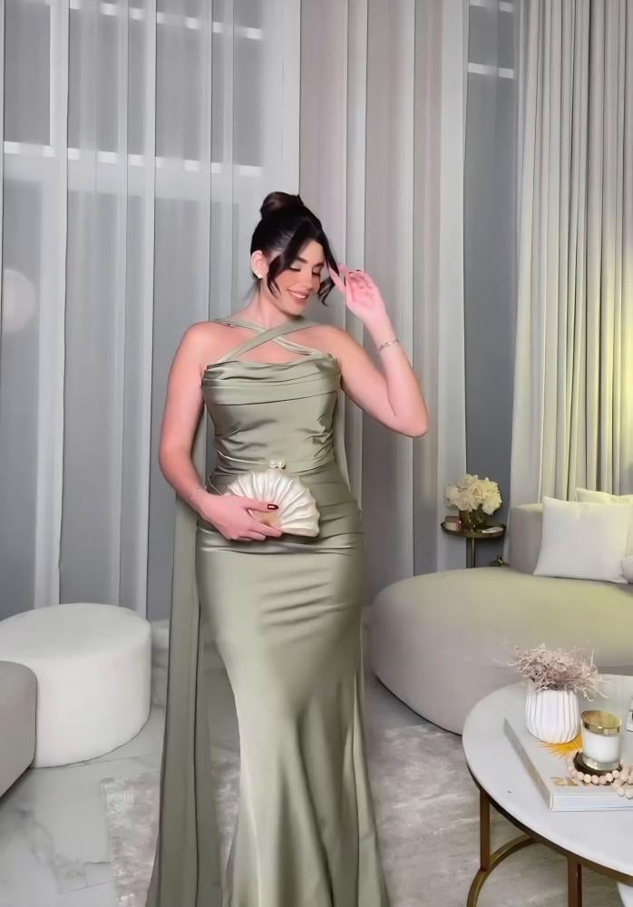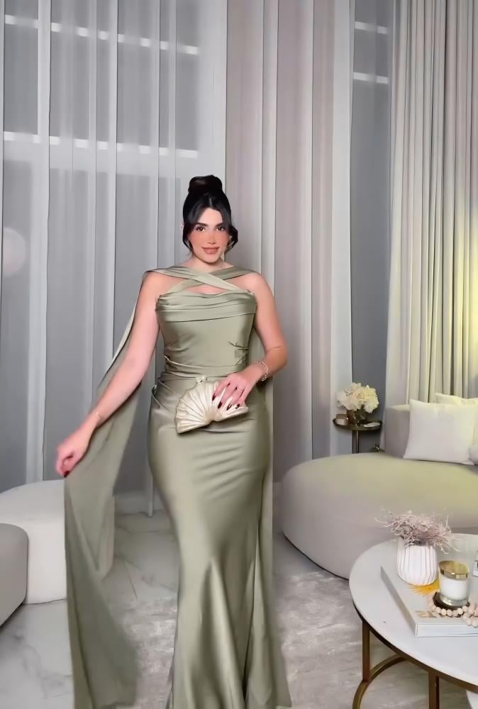 فستان سهرة فستان زيتوني فاتح بقصة حورية