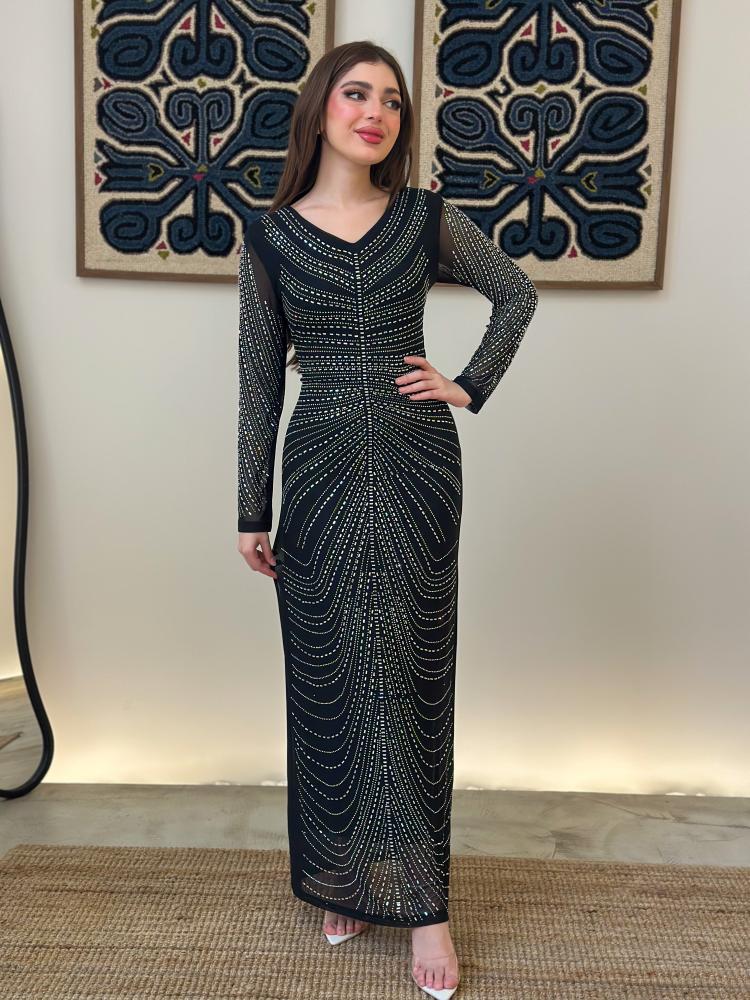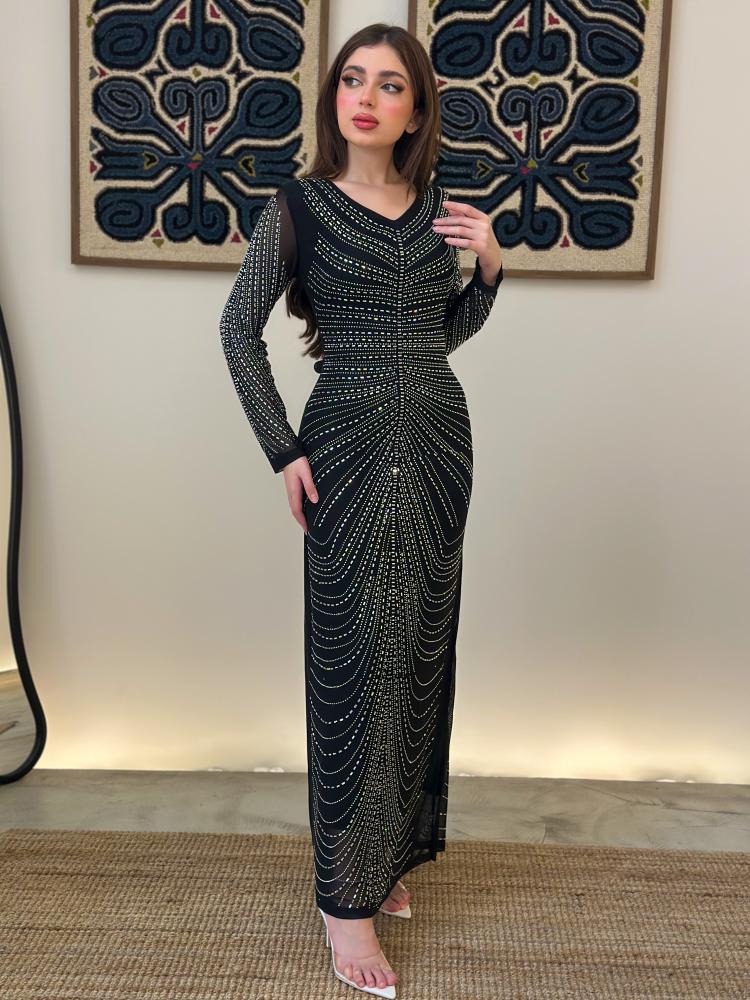 إذا كنتِ من محبات الإطلالات الفريدة، فهذا الفستان هو الخيار المثالي لكِ. تصميمه المستوحى من النقوش الشرقية يمنحك مظهرًا راقيًا وأنيقًا بلمسة عصرية جذابة.