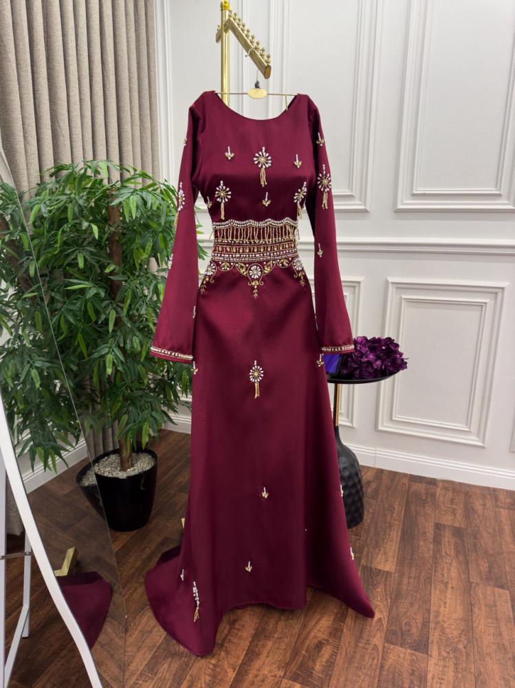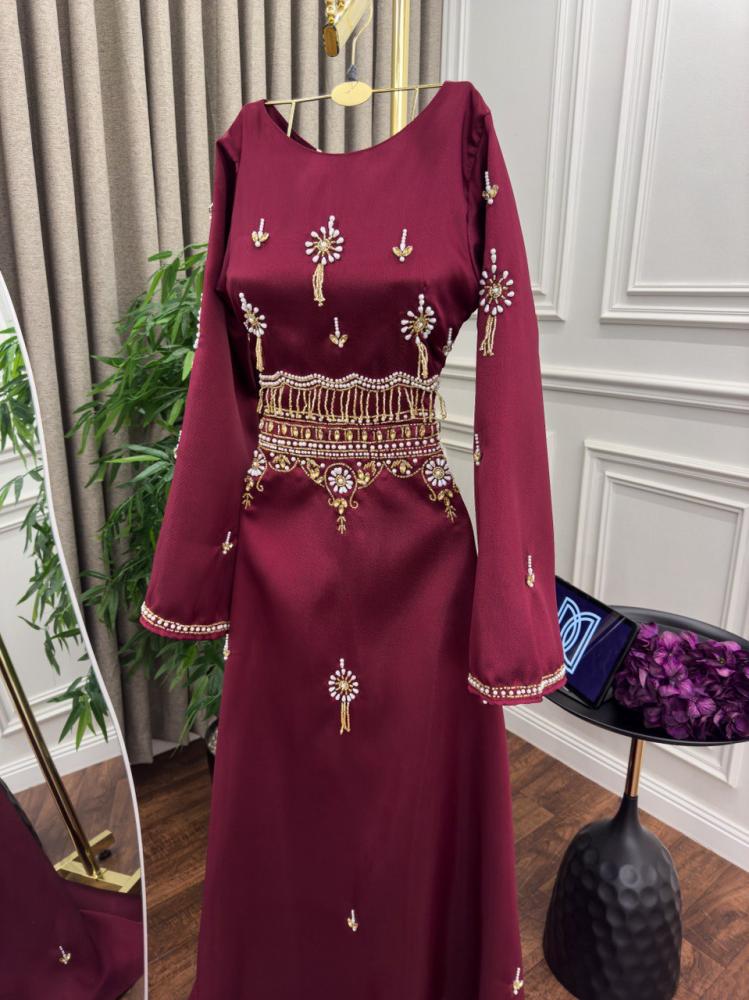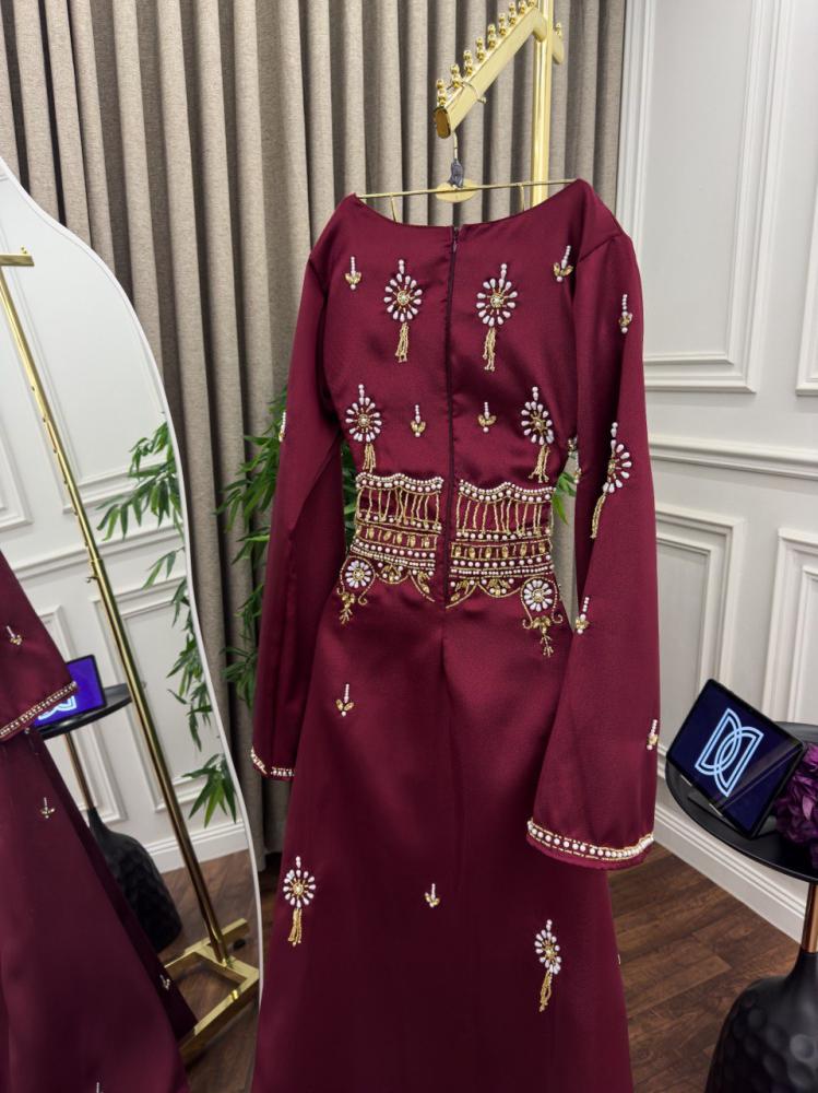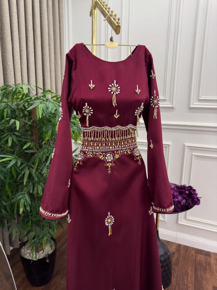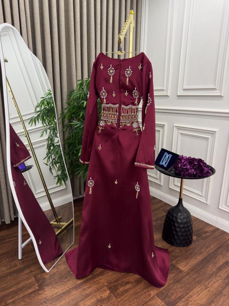 فستان بلون عودب مطرز بستايل ملكي ،