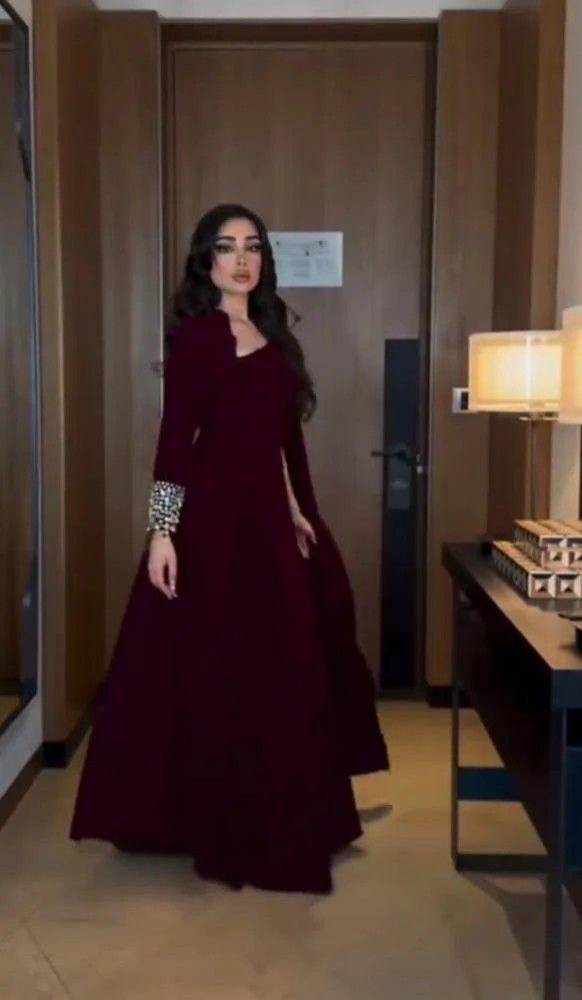 فستان عودي بتموجات وأكمام كلوش ، بخامة باربي اصلي