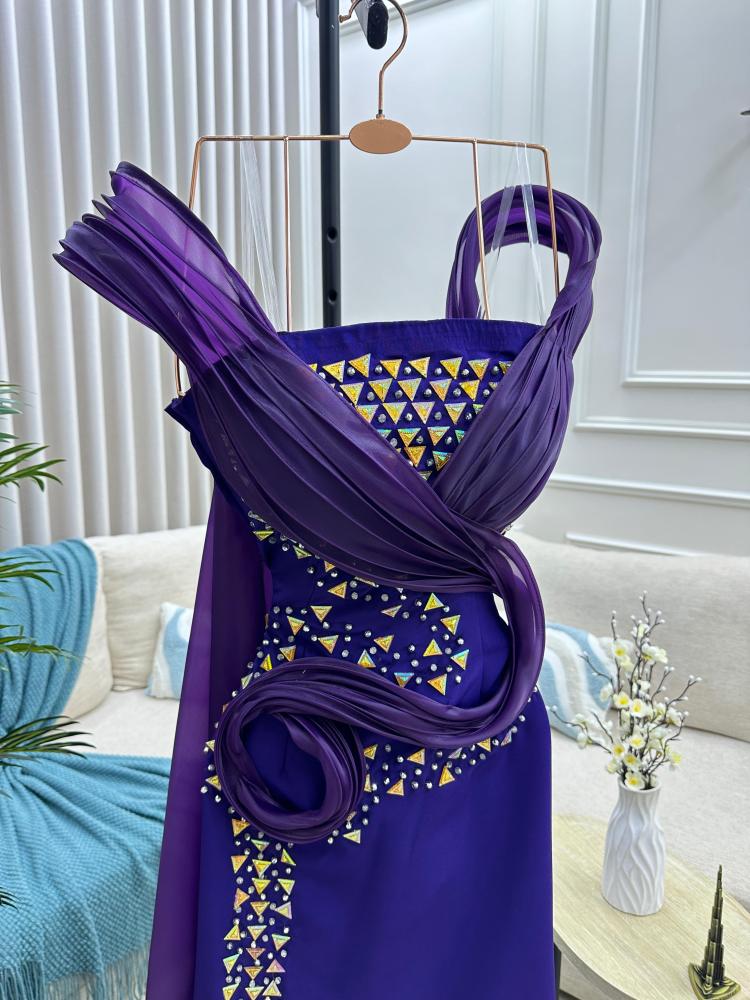 - الخامة: تول مطرز بالترتر، مع بطانة ساتان