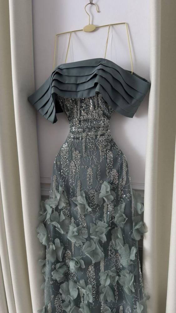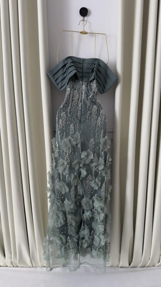 - الخامة: تول مطرز فوق شيفون